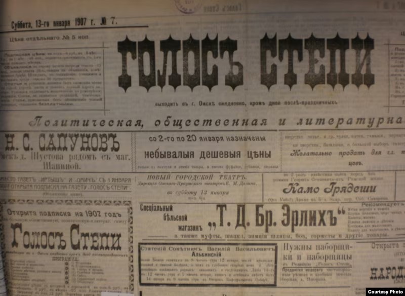 Әлихан Бөкейханның бас редакторлығымен «Иртышъ», «Омичъ», «Голосъ степи» газеттері шығарылған. Зерттеушілердің дерегінше «Иртышъ» газетінің тоқсанға жуық, «Омичъ» газетінің үш саны табылған.