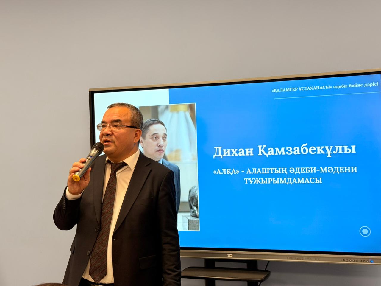 Жобаның бүгінгі дәріскері, «Қазақ газеттері» ЖШС директоры, филология ғылымдарының докторы, академик, алаштанушы ғалым Дихан Қамзабекұлы «Алқа» – Алаштың әдеби-мәдени тұжырымдамасы» атты тақырыпта дәрісін оқыды. Дәріске алаштанушы ғалымдар, ақындар мен жазушылар, студенттер мен оқырман қауым өкілдері қатысты.