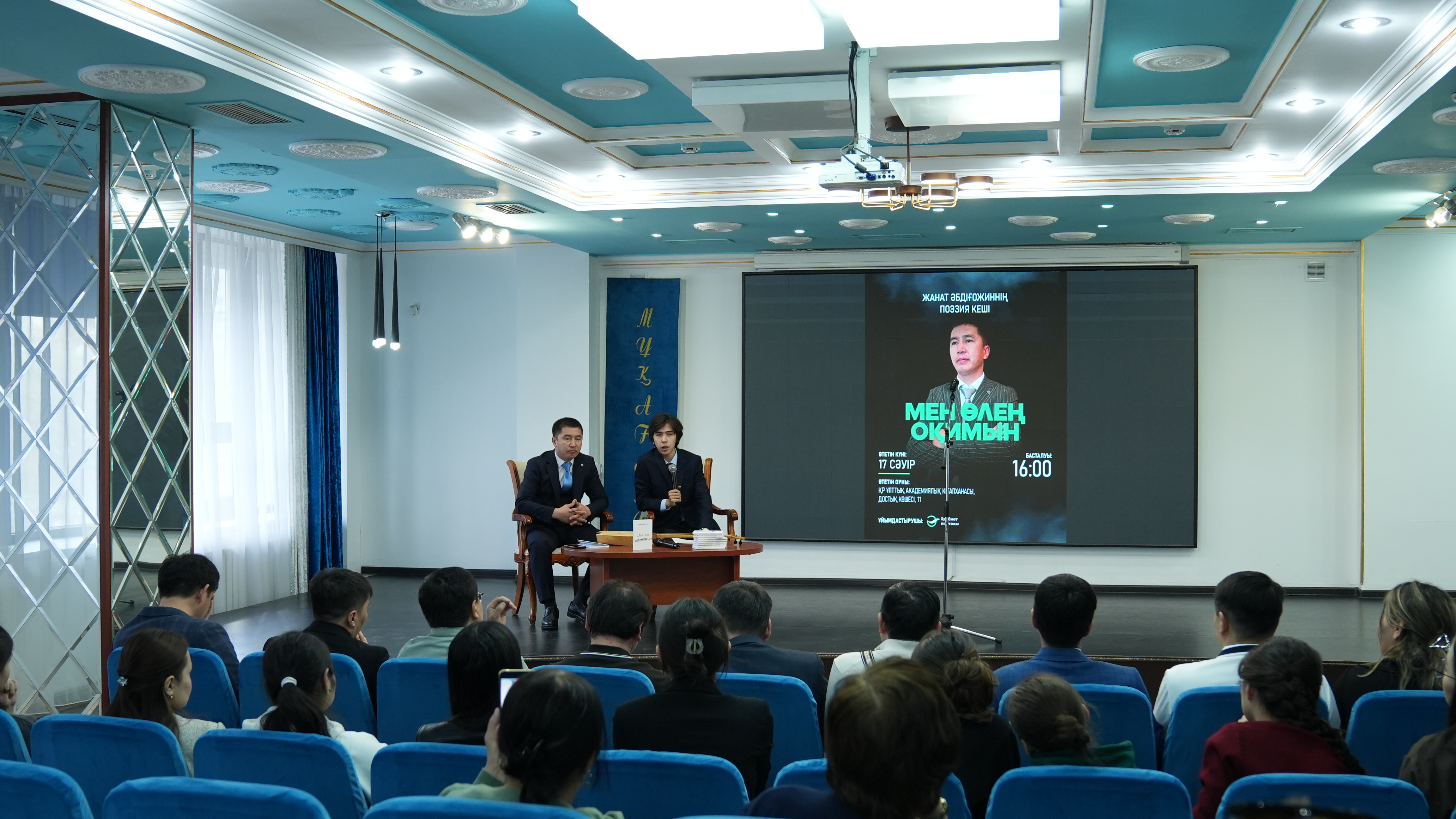 Өткен жұмада Астанадағы Ұлттық академиялық кітапхана төрінде ақын Жанат Әбдіғожиннің поэзия кеші өтті. Бұл 23 сәуір – Ұлттық кітап күніне орай «Әдебиет порталы» мен Қазақстан Республикасының Ұлттық академиялық кітапханасы бірлесіп ұйымдастырған рухани шаралардың бірі болды.