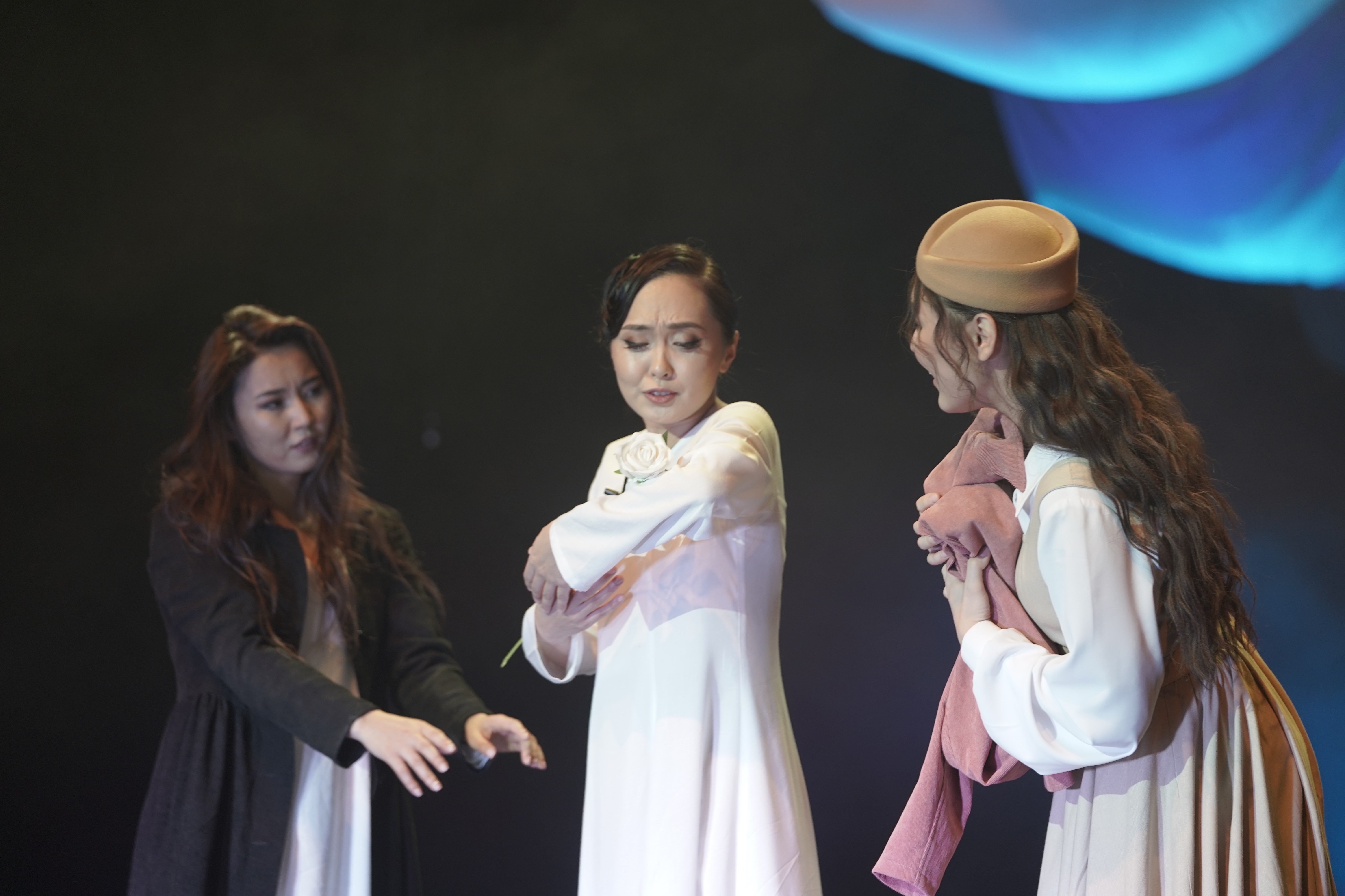 Көрермен өзінің керегін алады деген ойдамыз. Әрине қиындық та бар. Ол өмірде болып жатқан, қазіргі заманда бар нәрселер. Сол бар дүниені, сахнадан өзін көрген көрермен бұдан сабақ алып, қателіктерді қайталамауға тырысады деп сенеміз. Махаббат өлімнен де күшті екенін дәлелдеп кетті. Махаббат – мәңгі өлмейді. Туындының тақырыбы сол. Мұнда бір әйелдің тағдырын жеті актриса ойнады. Бұл – режиссерлік интерпретация. Бір әйелдің тағдырын бірнеше актрисаға бөлдік. Бұл актрисаларымыздың өсуіне де мүмкіндік. Бір адамды ойнатып қойып шарықтау шегіне жеткізгеннен гөрі, барлығын бірге қамтып, бірге сахнаға шығарып, олардың бойындағы актерлік шеберліктерін өсіру арқылы көрермен жүрегіне жол табуға бағытталған дүние», - деп өз ойын бөлісті қойылым режиссері Нұрфат Вахитов.