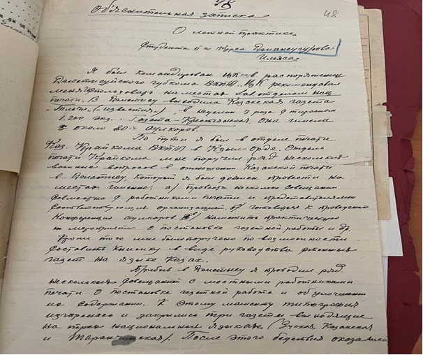 Телеграммада: «Жеделхатта: «Өлке комитеті оны ГИЖ-ге оқуға түсу үшін ұсынылған бөлу есебінен жіберіп отыр» деп жазылған болатын.
