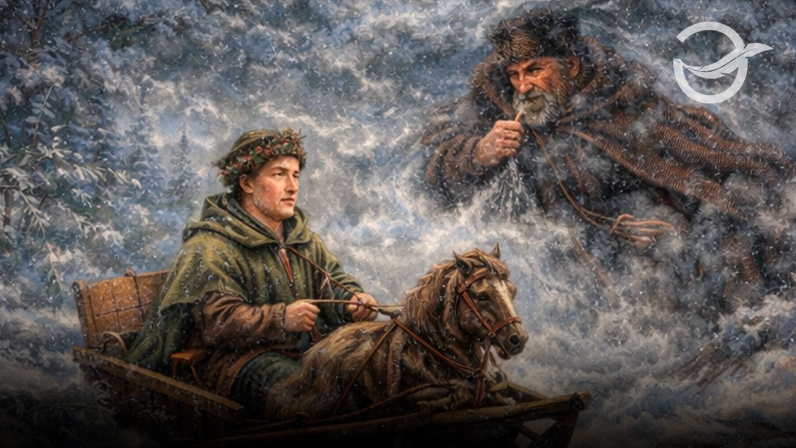 Наурыз Сәуірдің арбамен келе жатқанын көріп, алдынан суық жел үрлей бастап еді, жолдың бойын оппа қар басып қалады.