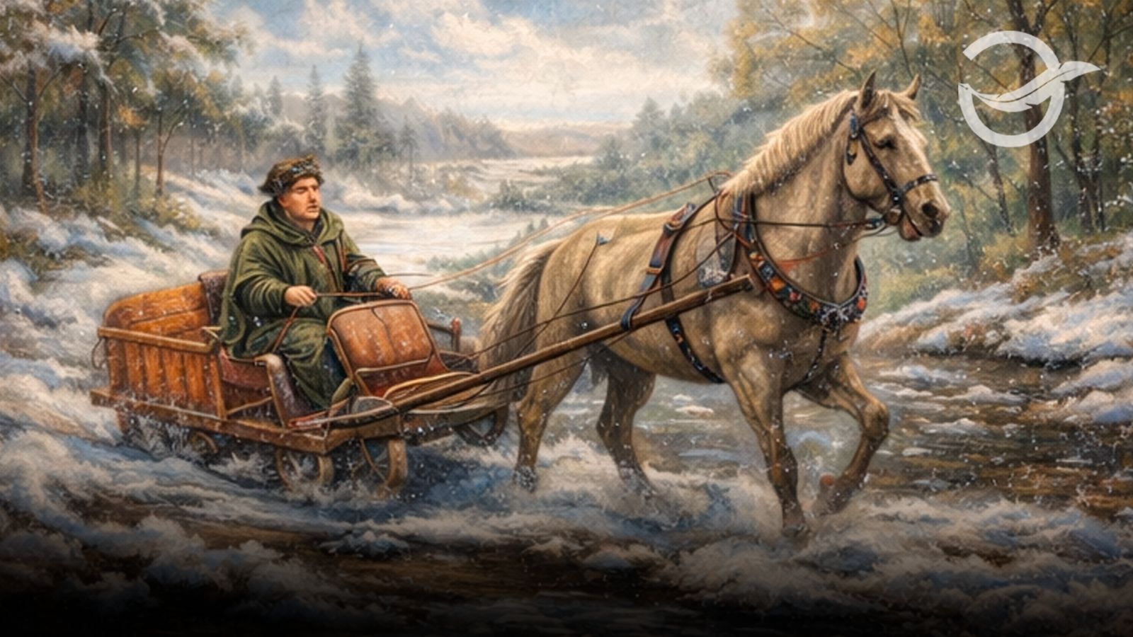 Сәуір арбаның үстіне шананы артып, шананың үстіне қайықты да сыйғызып салып алды да жолға шығады.