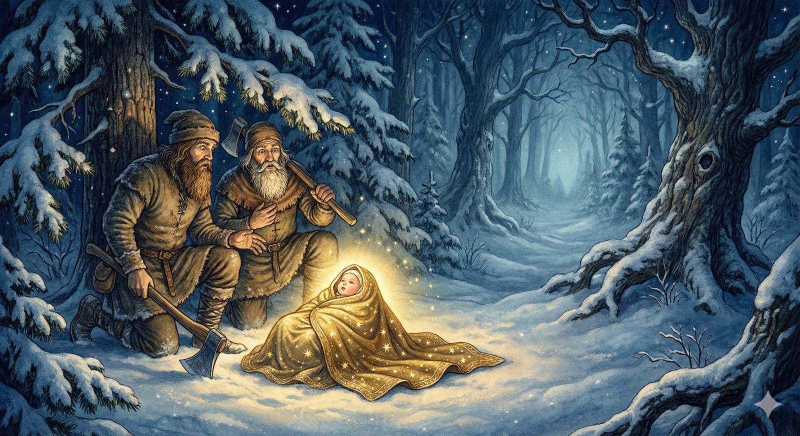 – Иә, біздің ешқашан жолымыз болмайды екен, - деді бірінші отыншы. – Бұл баланы қайда апарамыз енді? Осында қалдырғанымыз дұрыс болар. Жүр, тездетіп үйге қайтайық, өзге біреудің баласы тұрмақ, өзіміздің балаларымызға әрең-әрең тамақ тауып беріп жүрген жоқпыз ба?
