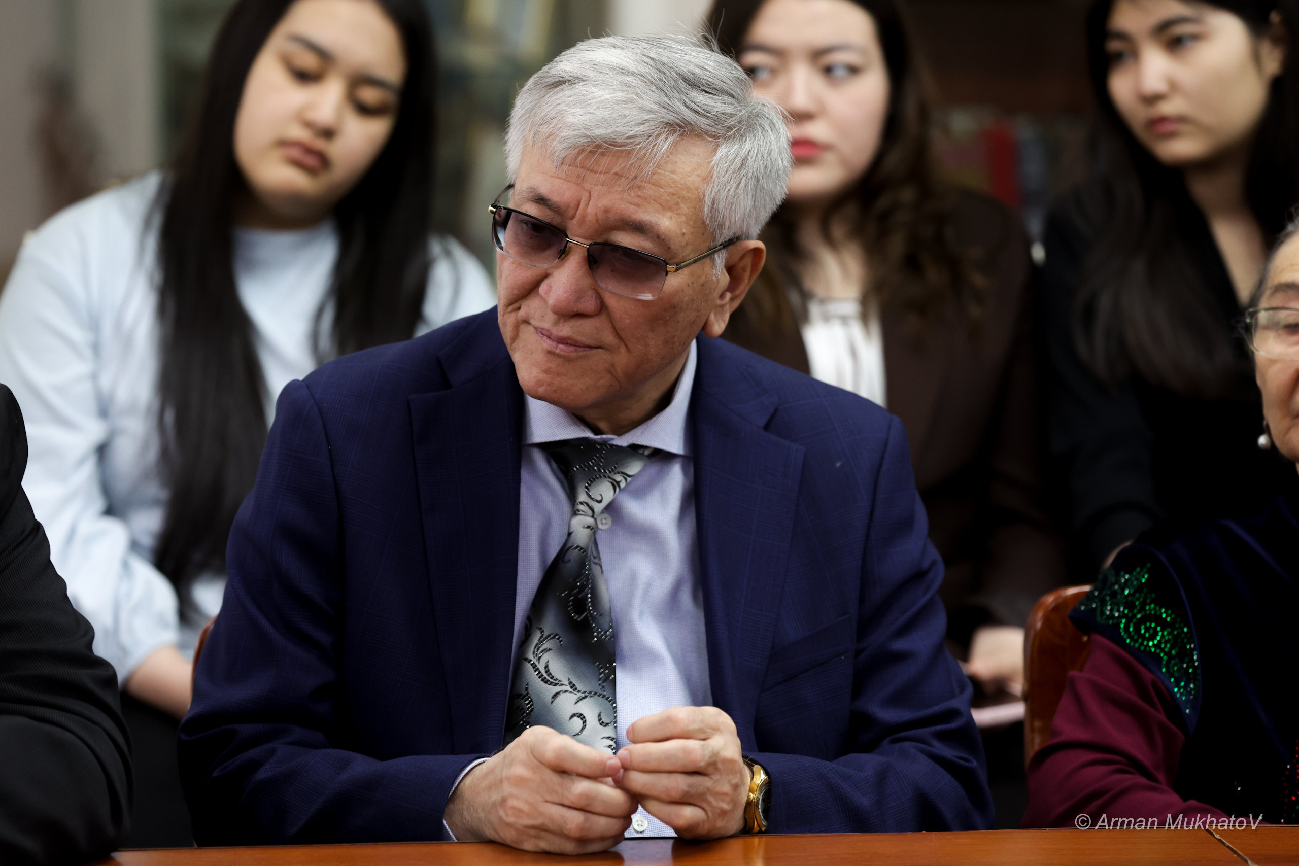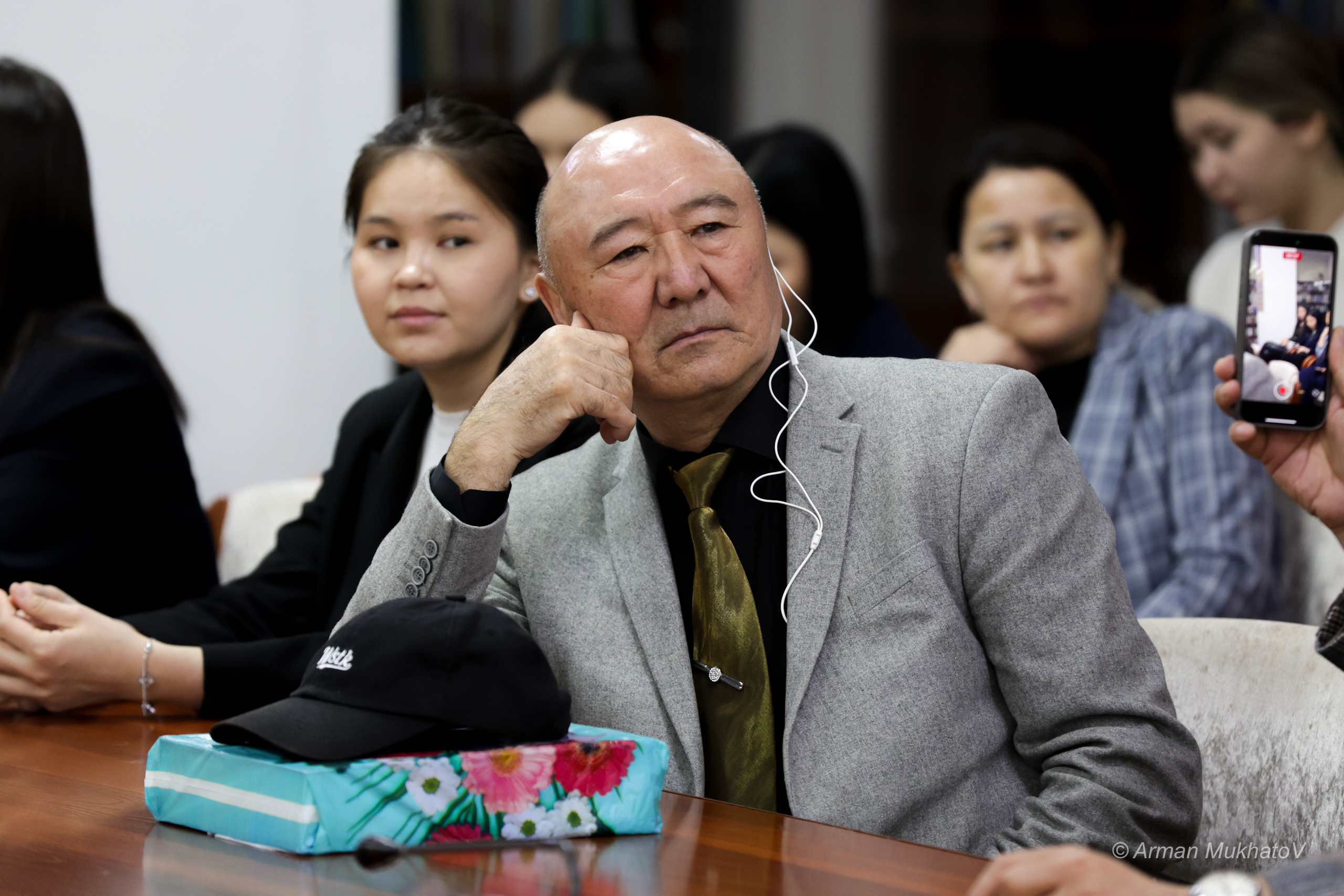 Соның біреуі - Қабдеш Жұмәділов. Қабдеш Жұмаділовтің өзінің айтатын сөзі бар: «қыл көпір» деген. Бұл – бір дәуірден екінші дәуірге өтіп бара жатқан кездегі алмағайып кезең. Дәл осындай кезеңге қатысты ағылшындардың: «Бір ғасырдан екінші ғасырға өтіп бара жатқанда туыл» деген қарғысы бар ғой. Біз сондай бір заманда туылдық. Сіздер, өткен ғасырда туған ағалар, ол кісілердің көзін көрдіңіздер және қазақ әдебиетінің ең бір керемет шағын көзбен көріп қалдыңыздар. Ал осында отырған студенттер қауымы, біз секілді жастар ол кезді көре алған жоқпыз және көз жазып қалдық десек болады. Себебі заман алмағайып болды, ел болып етегімізді зорға жидық және осындай күнге жетіп отырмыз. Дәл осы кезеңде, қазақ әдебиетінің сол әйгілі өкілдерін көзімен көрген сіздердей кісілермен сұхбаттас болу, бір үстелдің үстінде бас құрау, ол – біз үшін де үлкен мәртебе екенін айтқым келеді.