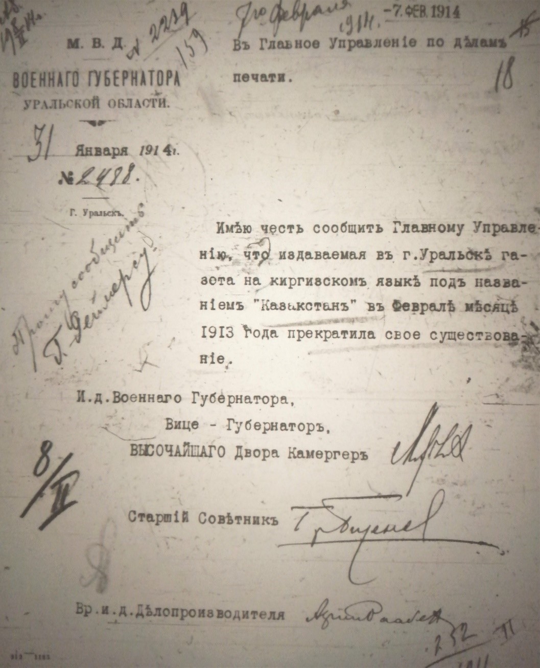Тарихи газеттің жабылуы туралы архив құжаты. РГИА СПб, Фонд – 776 , Оп. – 21, Д. – 252