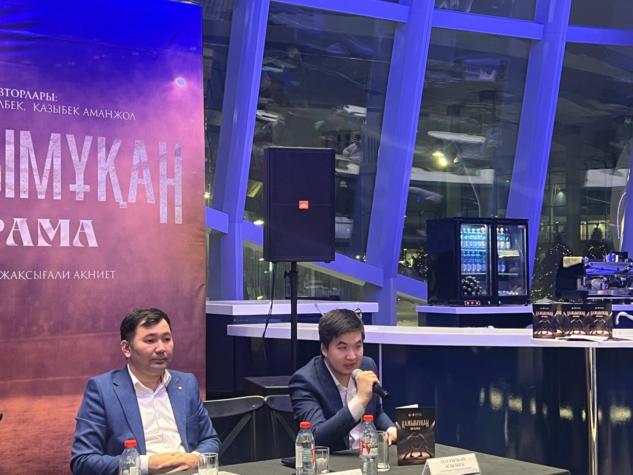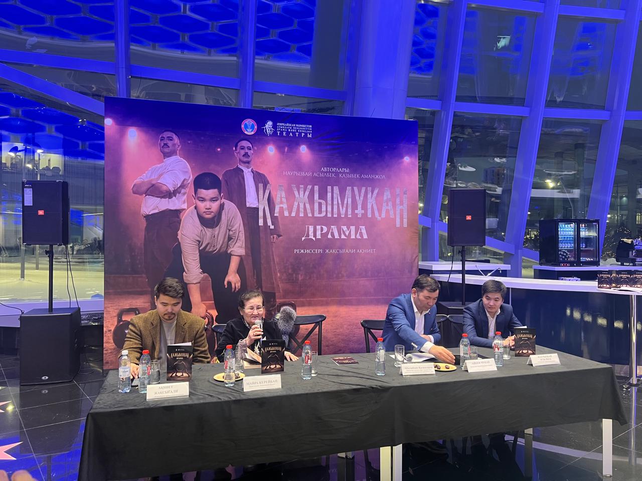 «Қажымұқан» пьесасының авторы, жалпы өзегін құрастырған Наурызбай Асылбек бауырымыз. Өзі жас болса да қазір көресіздер, бағасын бересіздер, пьесаның тілі жатық, кешегі қазақтың тілімен сөйлете алған. Наурызбай белгілі бір себептермен Алматыға кетіп қалған болатын. Одан кейін жұмыстың жартысына Қазбек Аманжол көмектесті. Бұл да Түркістанда, Алматыда көптеген жобаларды жүзеге асырып жүрген азамат. Яғни қойылымның авторы – Наурызбай Асылбек пен Қазыбек Аманжол.