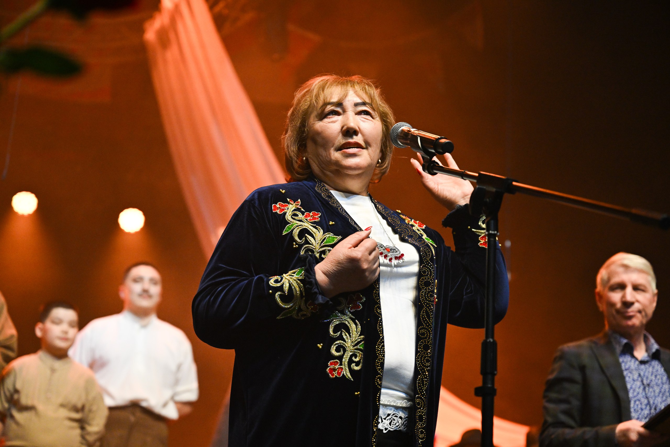Сахнаға көтерілген Қажымұқанның шөбересі Айкен Мұқан ұрпақтар атынан алғыс-ризашылығын білдіре отырып, ендігі бір арманы - Астана қаласының шетінде, ата-баба зиратында жатқан Мұңайтпас бабаның басына лайықты белгі қою керектігі екенін айтып өтті.