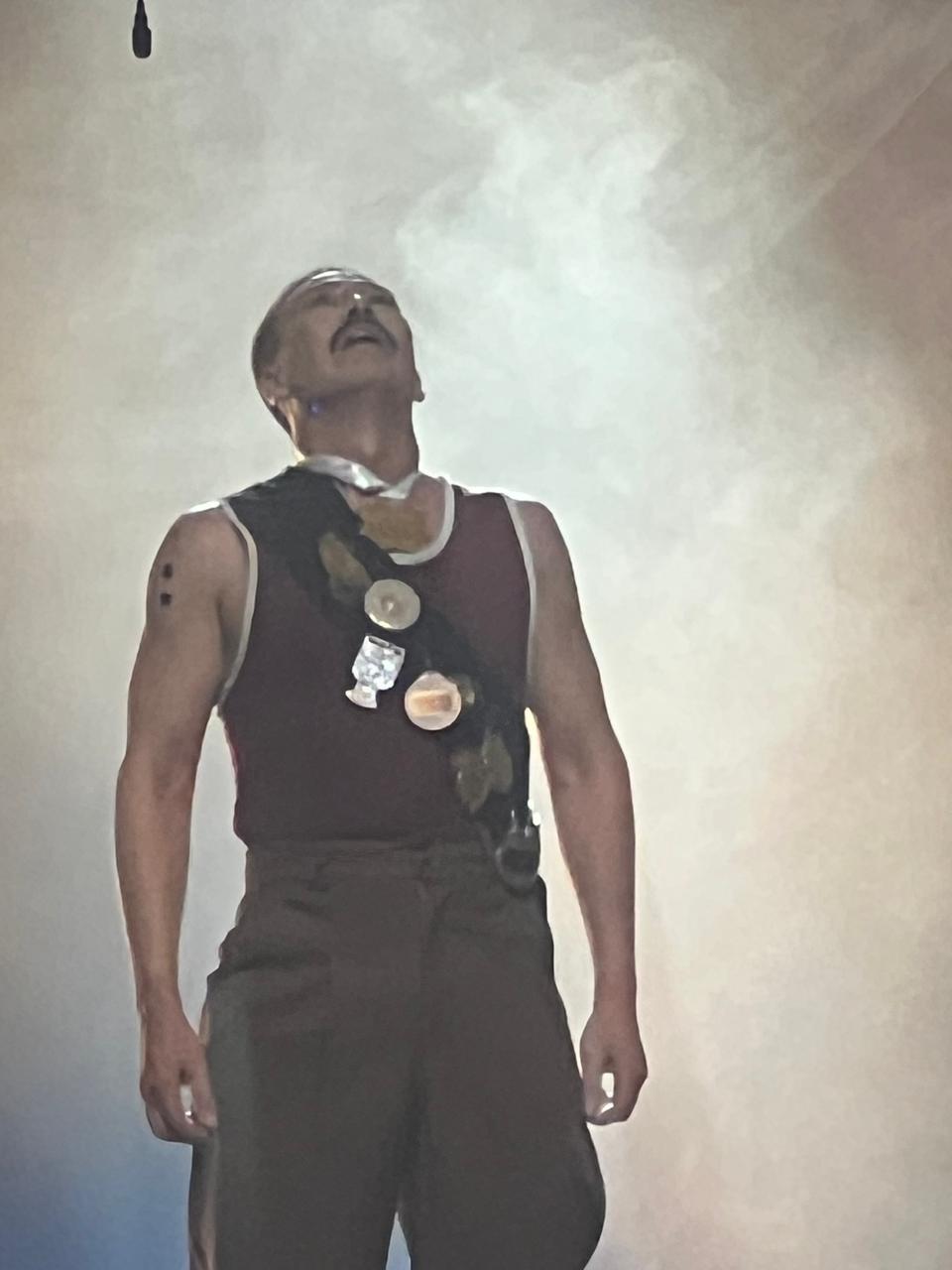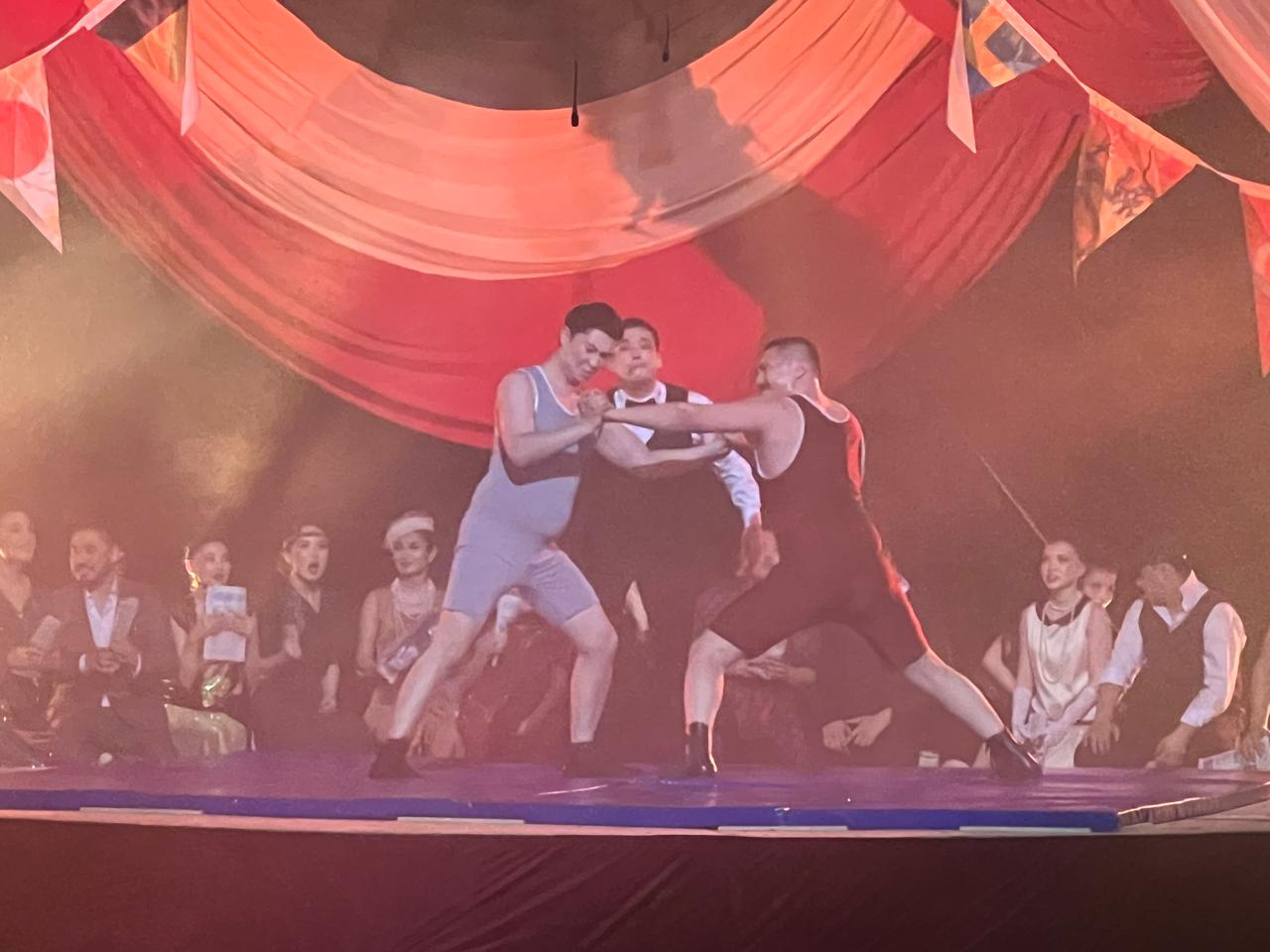 Құрылғанына сегіз-ақ жыл болған жас театрдың актерлік құрамы режиссер ойын барынша дұрыс түсініп, бар мүмкіндіктерін көрсетіп баққаны анық. Сахналық басты құрылым мен ойынның өзі негізінен цирк аренасына негізделгендіктен, қойылымда жонглерлік, акробатикалық, жекпе-жек сайыстық және шоу-бизнеске тән элементтері барынша мол болды. Кәсіби спортшылар болмаса да театр актерлерінің өздеріне берілген кейіпкер бейнесін ашуда көрсеткен вокалдық, ойындық және пластикалық шеберліктері көрермендерді тәнті етті.