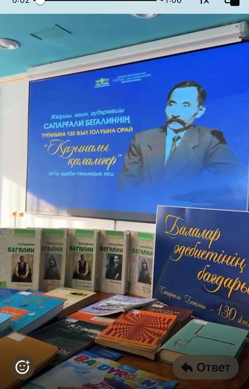 ҚР Ұлттық академиялық кітапханасында көрнекті жазушы, ақын, тарихшы, этнограф, аудармашы Сапарғали Бегалиннің туғанына 130 жыл толуына арналған «Қазыналы қаламгер» атты әдеби кеш өтті.
