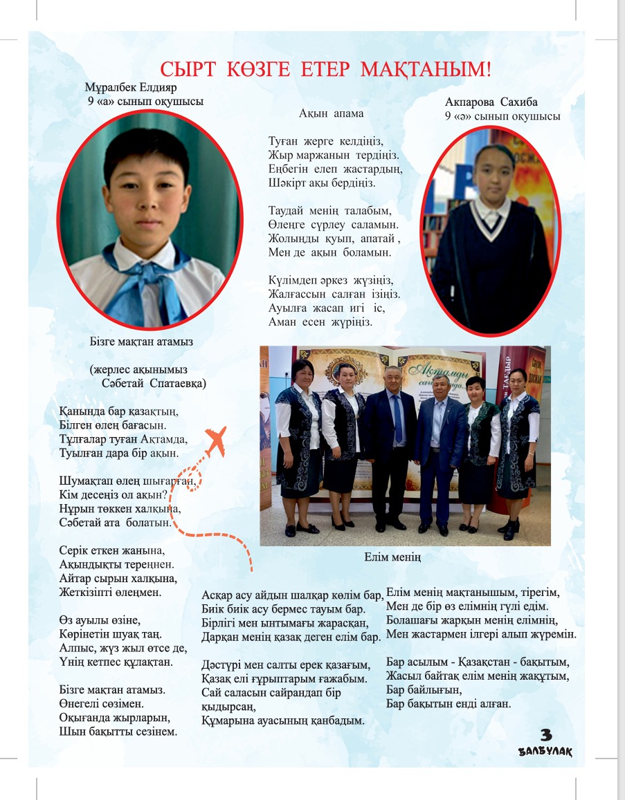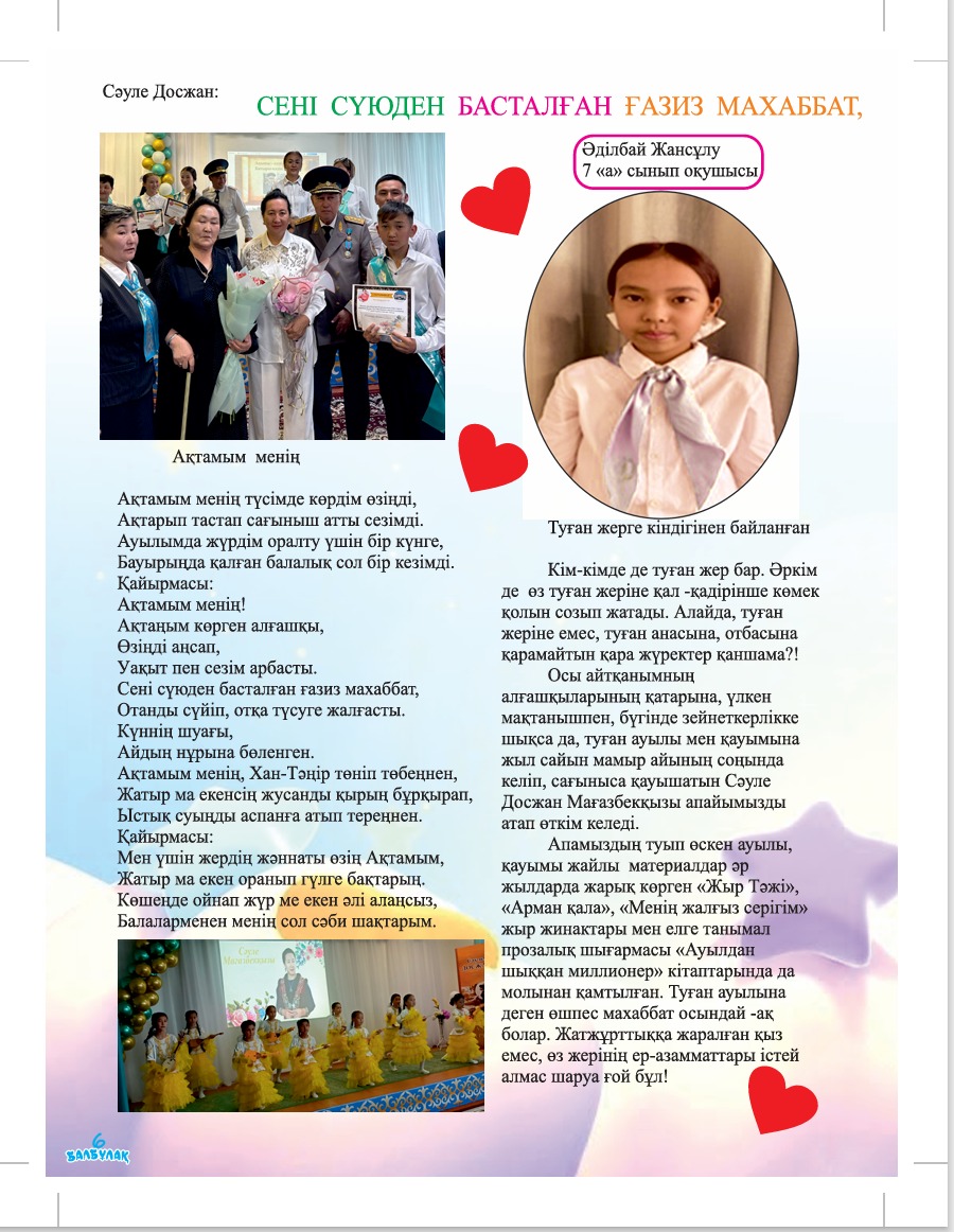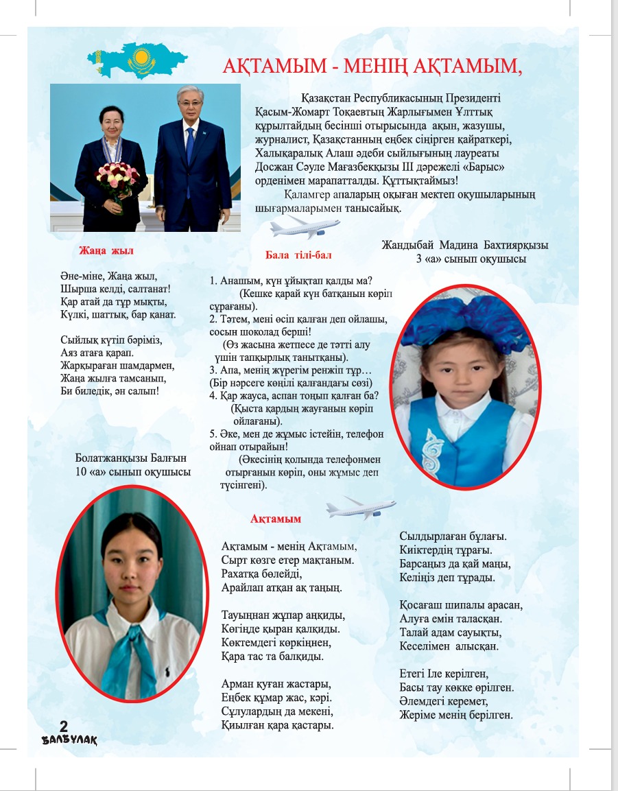 «Ақтам» орта мектебінде 7 сынып оқитын Әділбай Жансұлу «Балбұлақ» журналына былай деп хат жолдапты: