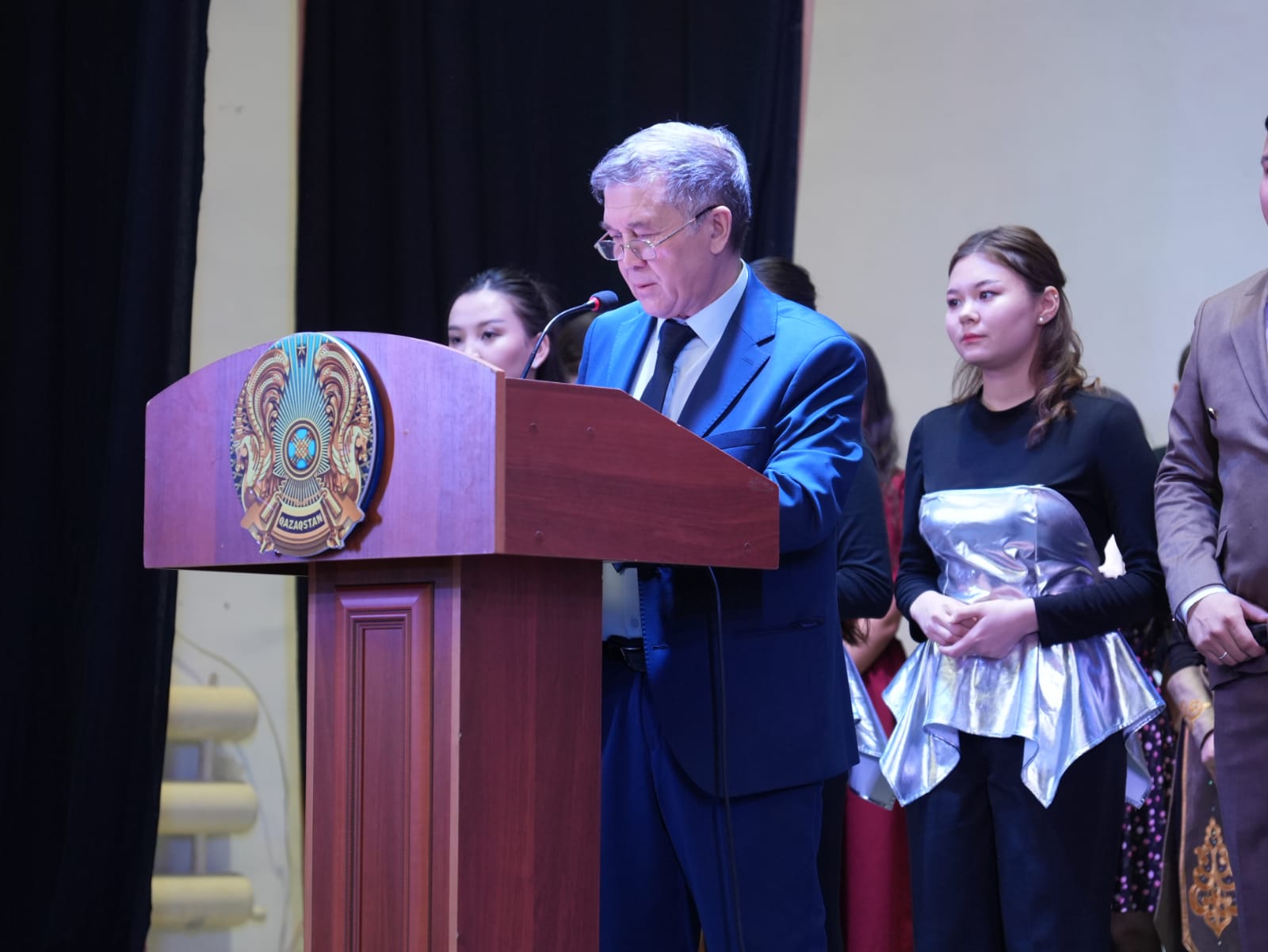 Шәкәрім университетінің басқарма төрағасы-ректоры Думан Орынбековтың Алғыс хаты мен сыяпатын Басқарма мүшесі-аппарат басшысы Мақсат Кәрібаев Есенгелді Сүйіновке салтанатты жағдайда тапсырды.
