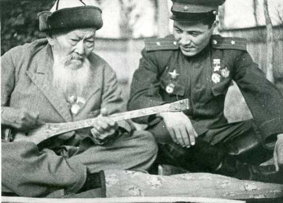 — Отставить, Момышұлы деп айт! - деп оған ұрсып тастады. Мергенов қызарақтап: «Кешіріңіз, Момышұлы» деп сөзін түзетті. Олар үйге кіріп отыра бастады. Тәтем домбырасын шертіп: